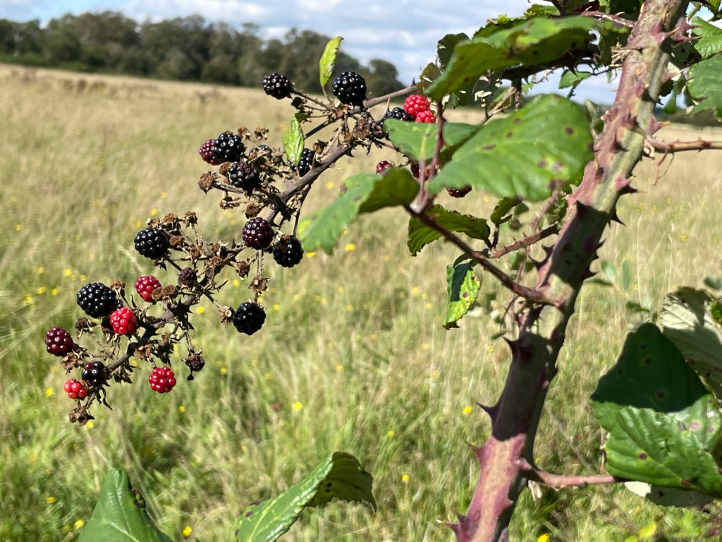 We ate some blackberries while we stopped to give Merlin some water. The blackberries were really tasty!