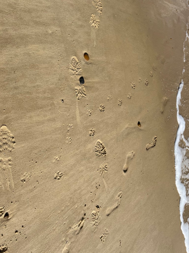 My sister and Merlin’s footprints heading together into the sea ā¤ļø