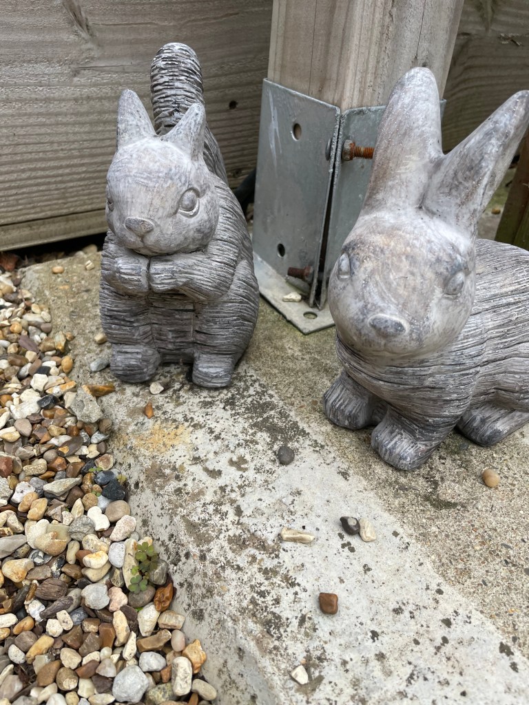 Little statues dotted around the garden area