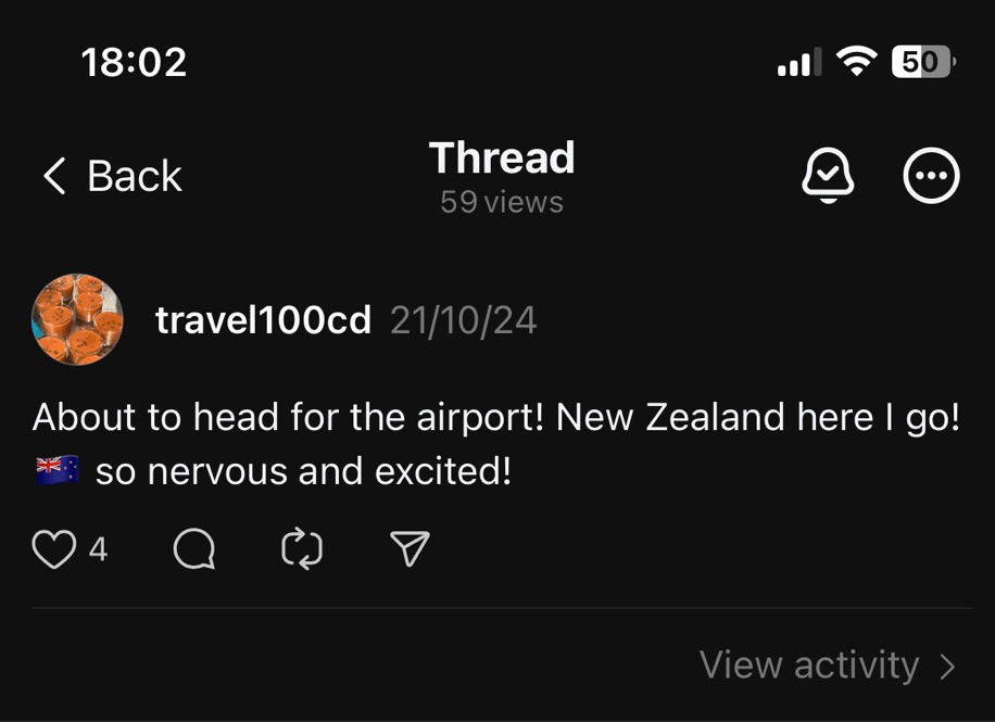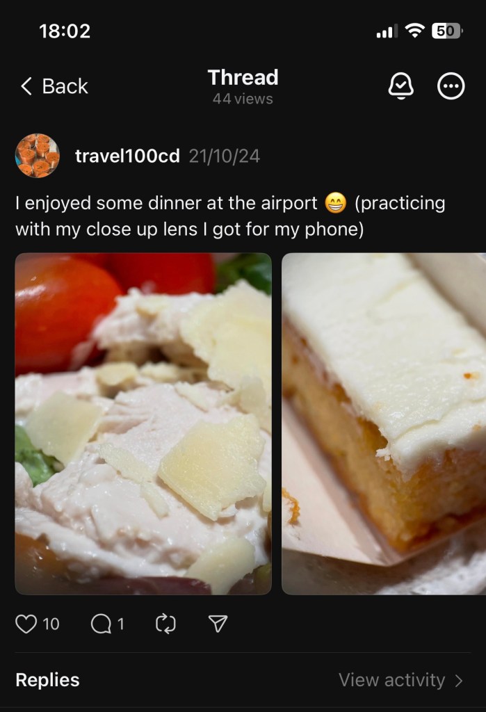 My afterthoughts: My vacation started on the 21st of October, 2024. I had never flown for this long before so I was incredibly nervous. I think the beginning of my journey could have gone better. I’d annoyed my parents dropping me off because I’d dropped my tickets on the floor and I had assumed I would be having something to eat with my parents before I started my flight but they seemed to want to me go as soon as possible, which had caught me off guard, so I was feeling a little off balance when I went through the security.