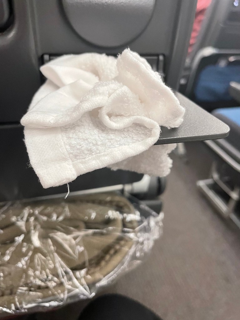 They’ve been handing out these hot small towels which I wasn’t sure what to do with but everyone else seemed to be wiping their face with it so I just followed their example.